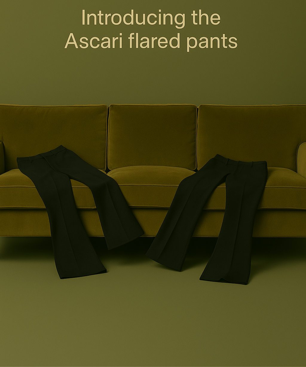THE ASCARI FLARED PANTS ARE A TRIBUTE TO THE ICONIC DANCE FLOORS OF THE 1970'S WHERE CONFIDENCE, RHYTHM, AND BOLD STYLE RULED. INSPIRED BY THE UNMISTAKABLE SILHOUETTE OF THE DISCO ERA, WE’VE REIMAGINED THE CLASSIC FLARE WITH A MODERN TWIST WHERE RETRO MEETS CONTEMPORARY FASHION.